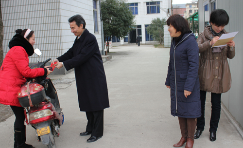艳阳高照春来早,2月9日,是新春上班的第一天。一大早,施培武所长、严丽英书记、葛黎菁副书记及相关职能科室负责人便守候在单位大门口,迎接前来上班的职工,为他们送去新春的祝福,并送上象征着幸福、吉祥的开门红包。职工们对所领导的诚挚问候和新春祝福表示衷心的感谢,纷纷表示,工作了那么多年,拿到开门红包还是头一遭,是一件很有意义的事情,回去后一定将红包好好珍藏。