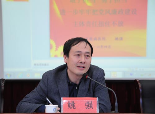 会议由严丽英书记主持,会上,单位党政主要负责人与分管领导、分管领导与各科室部门主要负责人签订了《党风廉政建设责任书》。签订仪式后,姚强院长给大家讲了题为《敢于担当、勇于担当,进一步牢牢把党风廉政建设主体责任扭住不放》的党风廉政专题党课,从忠诚于党、服务于民、勇于担当、清正廉洁、找准短板五个方面的具体内容,要求全体职工一是要加强道德修养和党性锻炼,锻造好过硬的思想品格和道德品质。二是要自省、自尊、自重,保持健康的生活情趣和高尚的道德情操,做一个有格调、有品位的人。三是要坚持五湖四海,拒绝小圈子,做到干干净净履职、规规矩矩用权,做严于用权的表率。四是要做务实谋事的带头人。五是要做敢抓敢管的带头人。并希望大家要有忧患意识,在单位内部管理、业务工作方面创新工作思路和工作方法,攻坚克难,谋划发展,不断适应新常态。