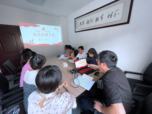 为庆祝中国共产党成立100周年,6月8日,第二党支部进行了党史教育专题学习会,党委委员、副院长董晓明上了一堂以《永远忠诚于党》为题的党课。