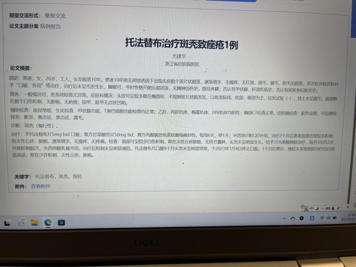 岗员尤建华发表论文《托法替布治疗斑秃致痤疮1例》