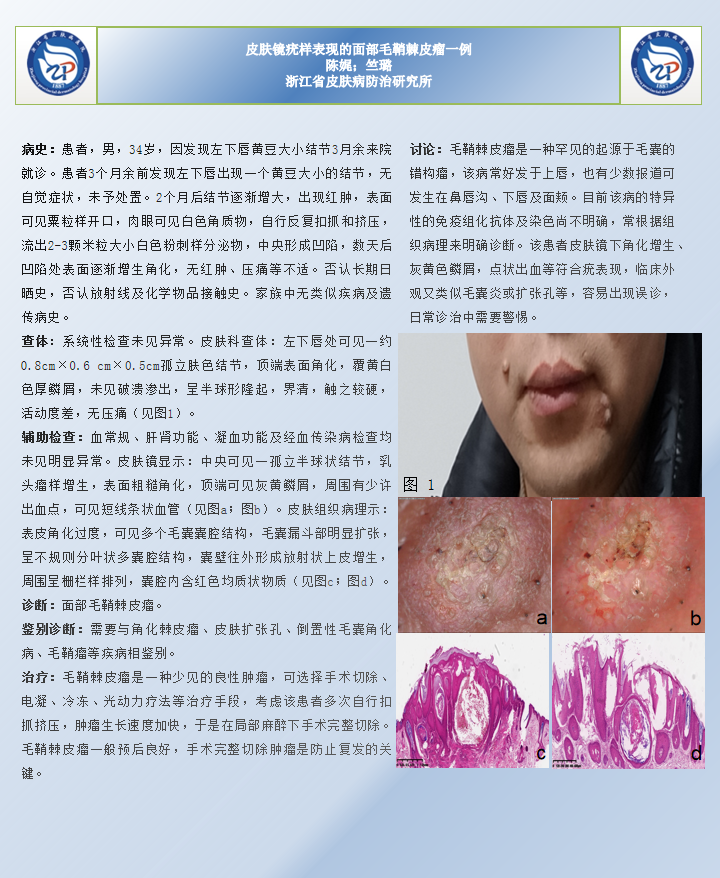 岗员陈娓、竺璐壁报论文《皮肤镜疣样表现的面部毛鞘棘皮瘤一例》..