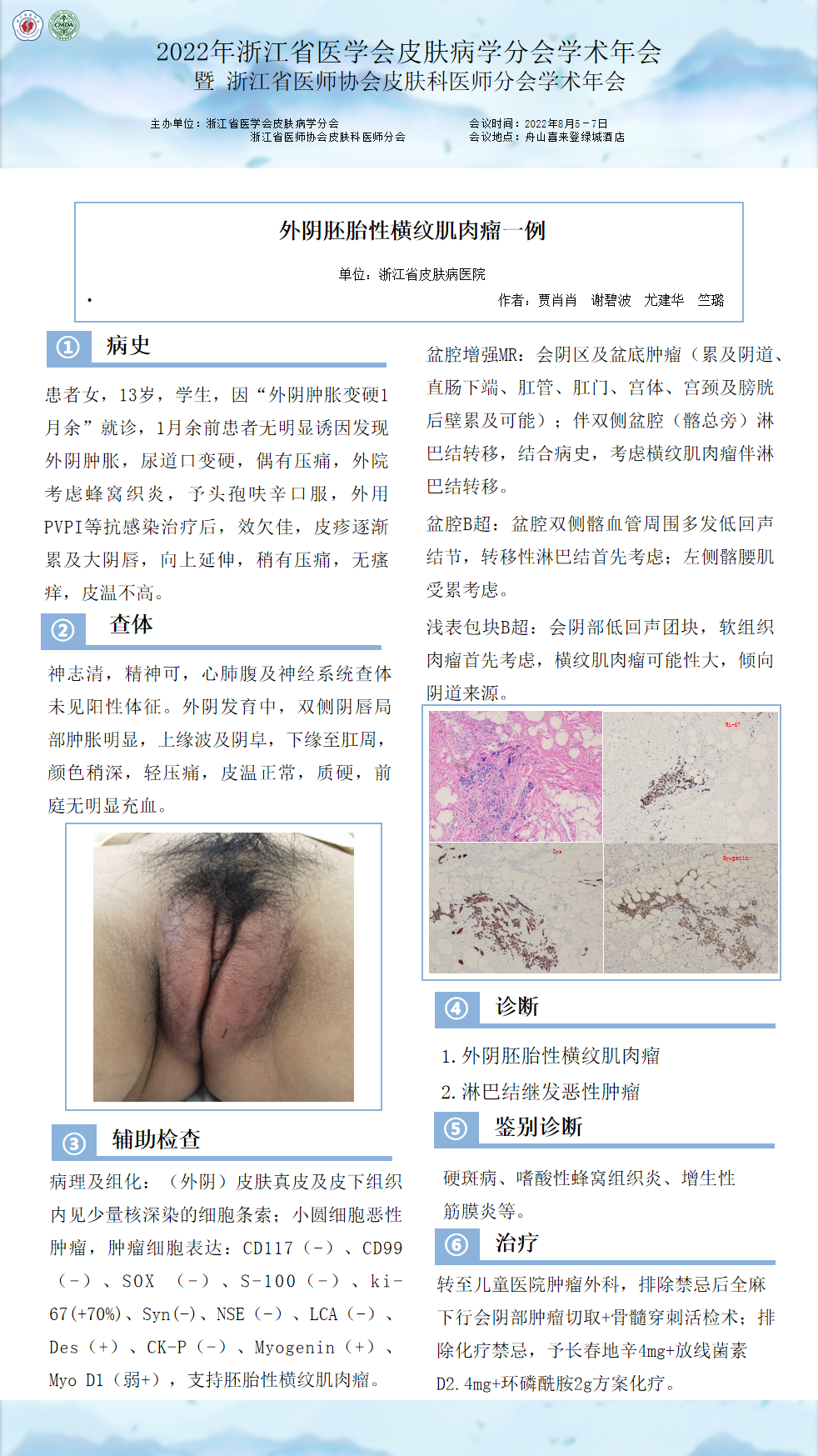 岗员贾肖肖论文《外阴胚胎性横纹肌肉瘤一例》喜获大会交流..