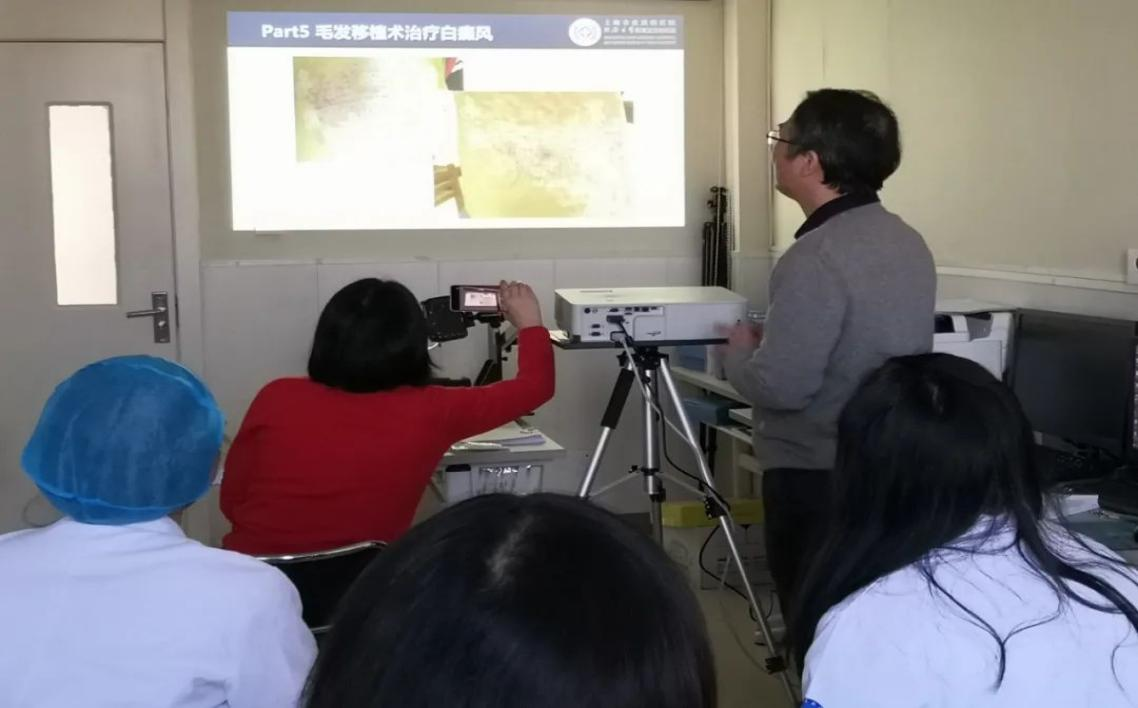 术后,陈裕充主任还为我们带来了《白癜风的外科治疗》精彩讲课,内容包括白癜风外科治疗适应症、相关技术如负压吸疱、组织工程表皮移植、毛发移植及其他外科方法等。