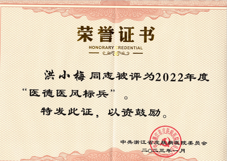 岗员洪小梅被评为“2022年度医德医风标兵”