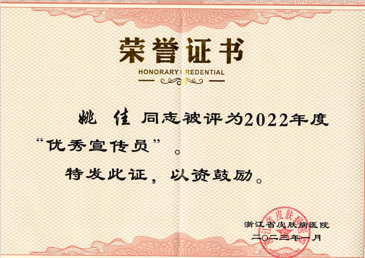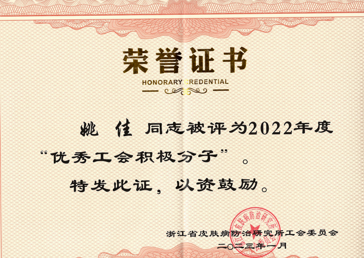 岗员姚佳被评为“2022年度优秀宣传员”及“优秀工会积极分子”..
