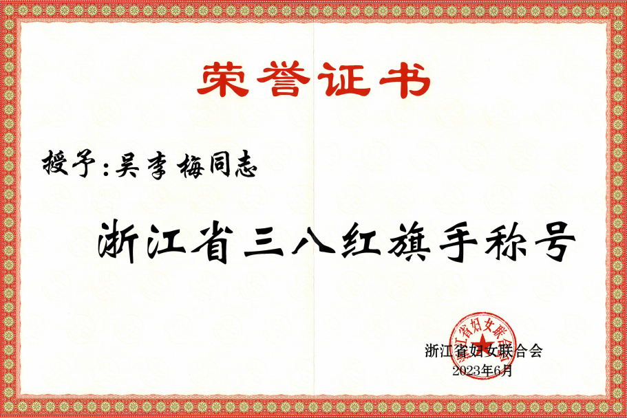 岗长吴李梅获浙江省三八红旗手荣誉称号