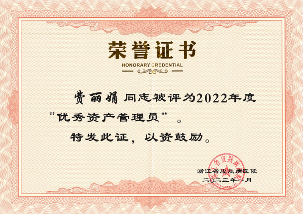岗员费丽娟获2022年度受表扬的管理干部和优秀资产管理员