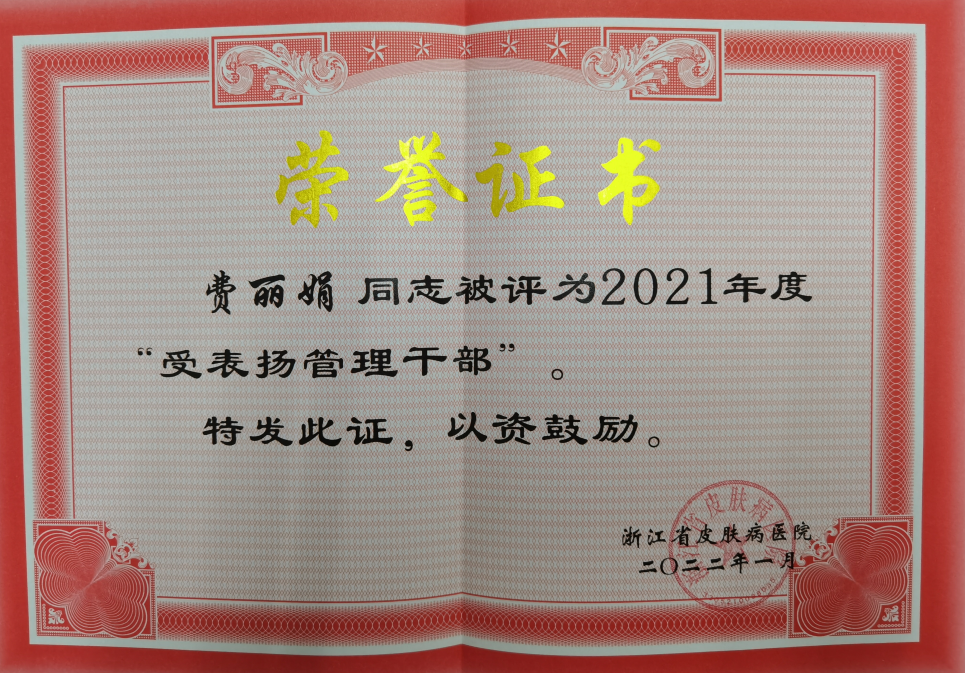 岗员费丽娟获2021年度受表扬的管理干部