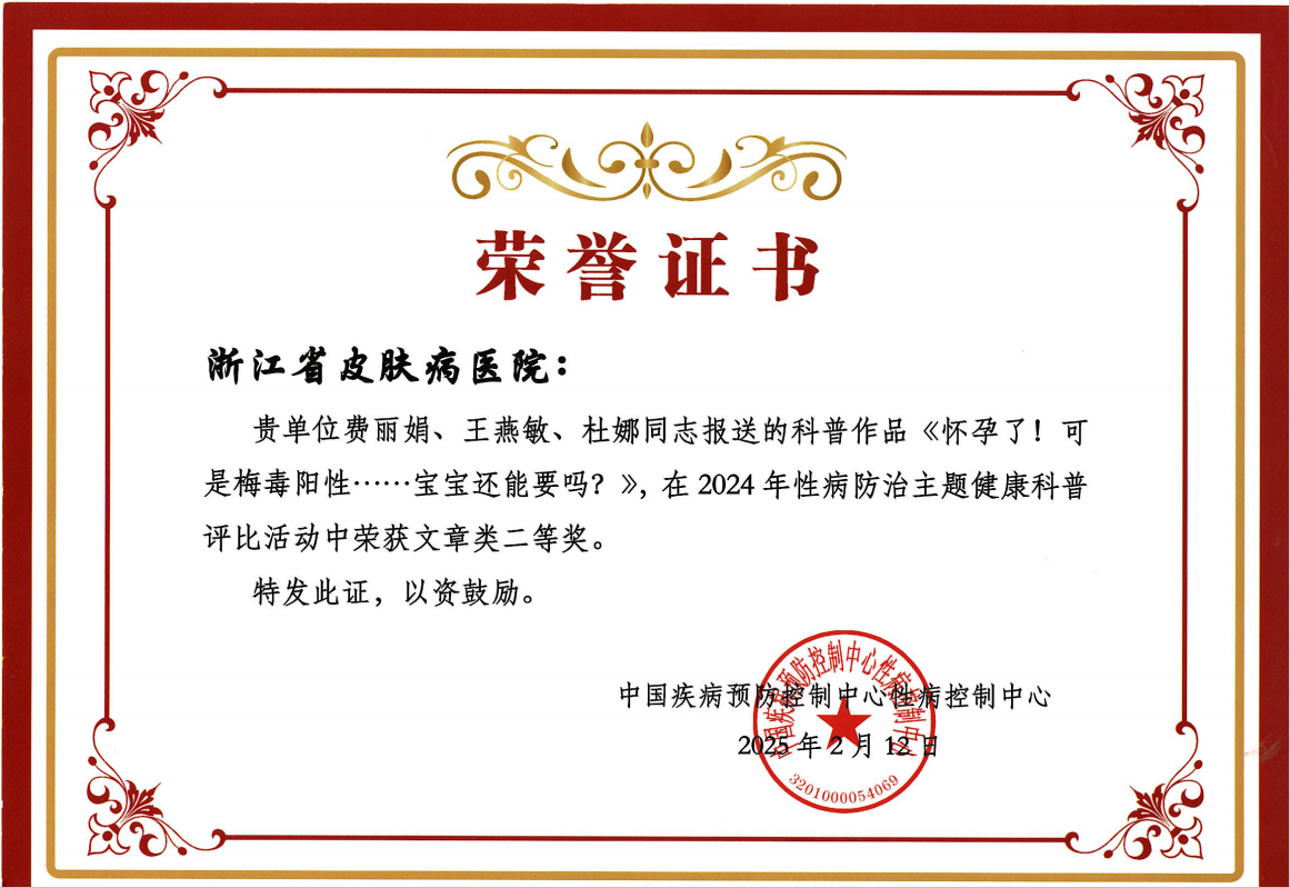 岗员费丽娟、王燕敏、杜娜在2024年性病防治主题健康科普评比活动中荣获文章类二等奖..