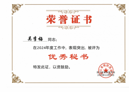 岗长吴李梅被评为浙江省预防医学会优秀秘书