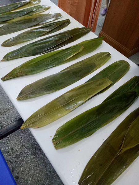 新鲜的粽叶,诱人的糯米,肥瘦相间的猪肉…