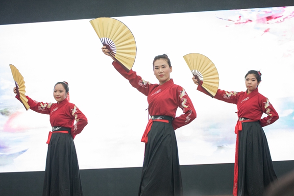 第八工会小组的舞蹈《樱花烂漫离人泪》用优美的舞姿诠释了相思离别苦。