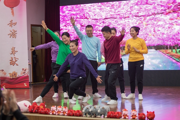 主持人开场后,第一团支部10余位新职工青春活力的《兔子舞》拉开了新春联欢会的序幕。