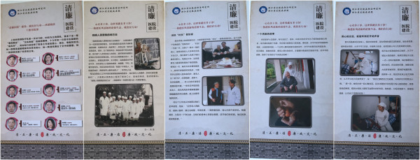 连廊主要展示了五位中央领导人嘱廉、党的十八大以来修制定的党纪党规、党风廉政建设和行风建设规定、清廉医院建设、上柏住院部医患故事、职工廉政书画作品、廉政漫画、廉政足迹等内容。