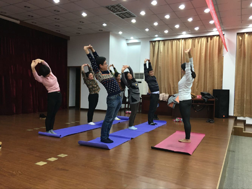 12月11日下午16点,第五工会小组在六楼多功能厅组织了瑜伽活动。此次活动的主题是“感受瑜伽运动,倡导健康生活”。