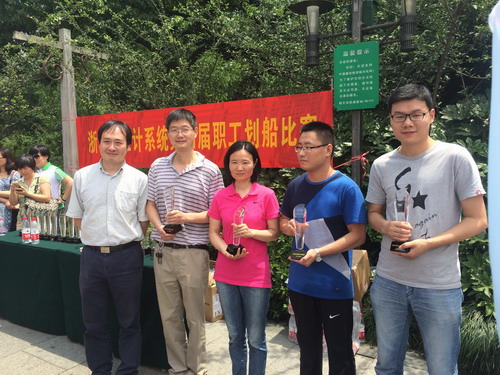 此次划船比赛实行的多人划船制,为5人一船,分舵手1名,划手4名,划船地点位于美丽的西子湖畔-杭州西湖六公园码头。我所参赛的5名运动员赛前虽然未经过系统的训练和专业的指导,在比赛中还是充分发挥了团结协作、顽强拼搏的精神,在参赛的21支省直单位队伍中,取得了12名的好成绩。赛后,陶林森主任作了总结发言。