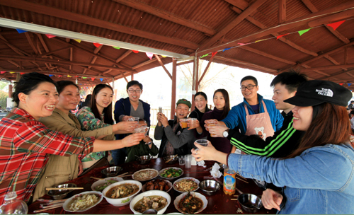 在花花世界生态农庄的游戏、采摘、野炊活动中,大家沉浸在欢乐的海洋。游戏猪八戒背媳妇趣味横生,令人捧腹大笑;分成两队的拔河较量,体现出团队的拼搏精神;亲自动手做圆子和花环,展示了女职工的一双巧手。野炊活动开展得热火朝天,职工们亲手摘青菜、拔萝卜、挖番薯。大家分工合作,烧火、洗切炒菜,个个拿出看家本领,香气缭绕,欢声笑语,陶醉在美味佳肴和彼此的情谊中。