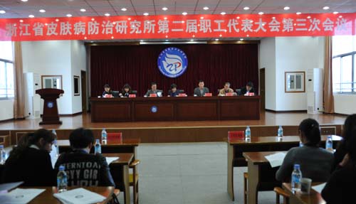 本次会议听取和审议严丽英所长作的《浙江省皮肤病防治研究所2013年度工作报告》;听取和审议于杭跃书记作的《浙江省皮肤病防治研究所2013年度工会工作报告》;听取和审议王爱英科长作的《浙江省皮肤病防治研究所2013年财务预算执行情况及2014年财务预算报告(草案)》;听取和审议黄婕科长作的《浙江省皮肤病防治研究所2014年绩效工资实施方案(草案)》;听取和审议桑旭东主任作的《浙江省皮肤病防治研究所规章制度制修订工作的说明》;听取提案组组长桑旭东作的《二届二次职工代表大会提案落实情况的报告》,补选一名工会委员等。