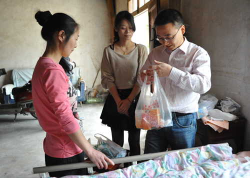 “最美妻子”的事迹深深震撼了我们。5月2日上午,我所团总支与德清县卫生局团委一起走进“最美妻子”高燕萍位于筏头乡兰树坑村的家。走进高燕萍家,一幢上世纪建造的老房子,丈夫的病床在一楼,为了方便照顾瘫痪的丈夫,高燕萍在丈夫床边搭了张简单的小床。面容瘦削的朱成,尽管眼睛睁得很大,但对房间里的所有动静没有任何反应,整个人处于无意识状态。高燕萍慢慢掀开丈夫的被子说,“长时间不动,血液循环就不畅通,手脚就变成这样了,我每天给他定时做按摩。白天我要上班,只有吃完早饭和晚饭才有时间按摩。”这样朴实的言语,深深打动了在场的每一个人。虽然朱成长期瘫痪,大小便失禁,但他的床上去却很整洁,可见高燕萍有多么用心。