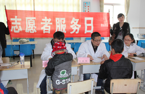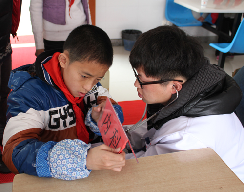 3月5日下午,省皮防所的志愿者们来到了培康学校,为学生们进行健康体检。那里的学生都是智障儿童或者是脑瘫痪者,他们不配合,不听话,惧怕穿白大褂的医护人员,有些甚至带有攻击性。我们的志愿者们耐心哄着他们乖乖的配合检查,一遍一遍重复着要求,花了比平时多一倍的时间给这50多名特殊的儿童进行了健康检查。