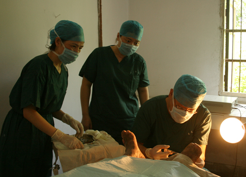 医疗队抵达后,不顾路途疲劳,马上投入工作状态,根据前期对麻风病患者眼、手、足的摸底筛查,确定手术方案,准备手术室、搭建手术床、术前器械准备及消毒,医疗队员们各司其职,工作紧张有序,经过近3个小时的协同作战,成功完成4例麻风畸残康复手术。