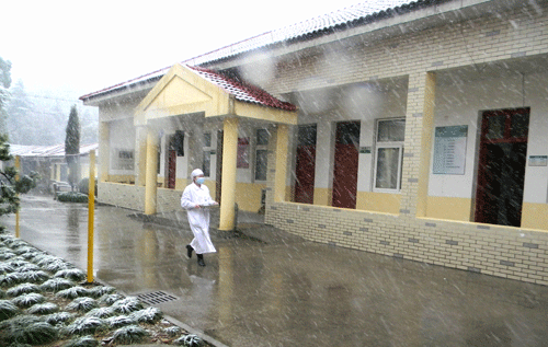 2010年的第一场雪来临之际,浙北山区的气温骤然下降至零下,不仅地面结冰,房檐上也结成了一条条冰棱。我所上柏住院部的医护人员依然不畏严寒,迎着风雪,坚守在麻防工作的第一线,在严寒风雪中为麻风休养员送去天使般的温暖。