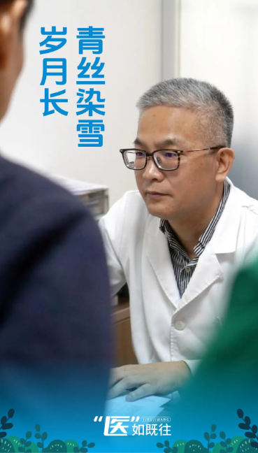 刚入职时,他一头黑发,门诊空闲时常翻阅皮肤病学的相关书籍。岁月的沉淀,让他多了几许白发,也积累了丰富的临床经验,为更多的患者带去希望和温暖。