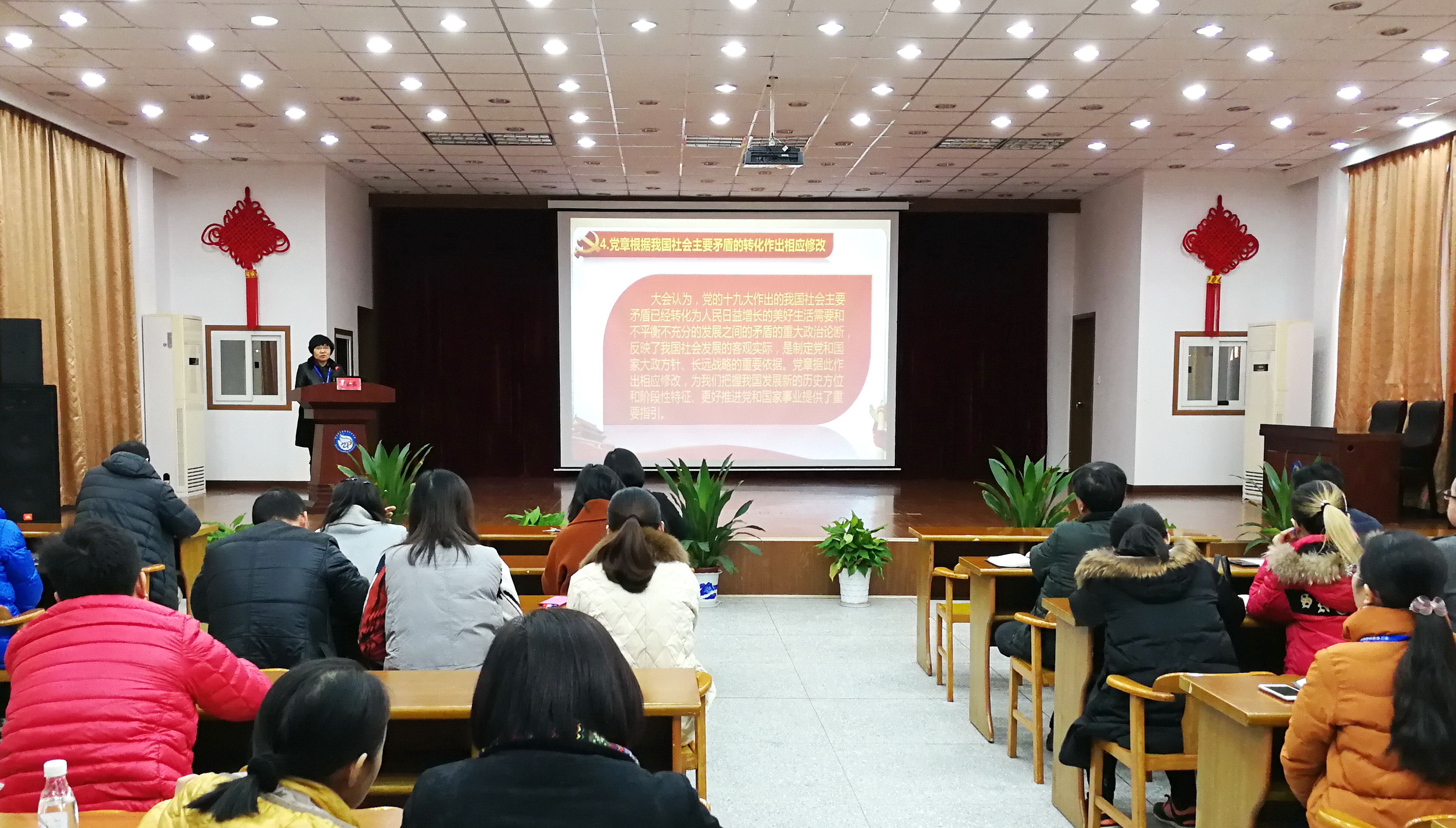 为了学习贯彻党的十九大精神和党章新要求,增强意识形态教育,提高党员干部党性修养,12月11日,我所党委书记严丽英、纪委书记陈海娟分别为全体党员、全体团员上了一堂精彩的党课。 课上,严丽英书记以《聚焦十九大学习..