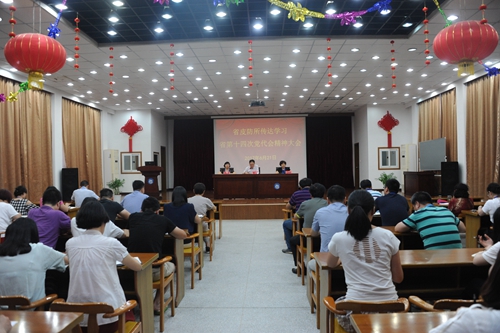 6月21日,我所召开传达学习省第十四次党代会精神大会,深入学习贯彻落实省第十四次党代会精神。会议由党委副书记、所长姚强主持,所领导、在职党员、中层干部、离退休支部委员参加。 会上,党委书记严丽英传达了省委书记..