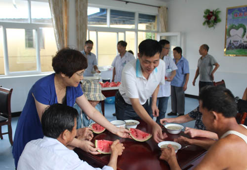 7月24日,所长严丽英、党委书记于杭跃、副所长沈云良和上柏住院部成员开展为麻风休养员“送清凉”活动。 活动现场,严丽英所长、于杭跃书记、沈云良副所长及上柏住院部医务人员为每一位麻风休养员送上了西瓜、绿..