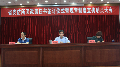 6月14日,我所召开医改责任状签订仪式暨规章制度宣传动员大会,会议由严丽英书记主持,全所职工参加了会议。 会议的第一项会议议程是施培武所长与各科室签订医改责任状。严丽英书记传达了省卫生厅2011年卫生系统医改会..