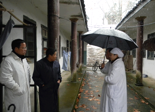 12月15日上午,大雪纷飞,根据县气象台的寒潮警报,山区有大到暴雪,山区积雪10厘米以上,按所领导指示,上柏住院部和休管会成员一起冒着大雪和严寒,查看了住院部的安全情况,重点对旧楼房及供水管进行察看。对住在旧楼房的休养..