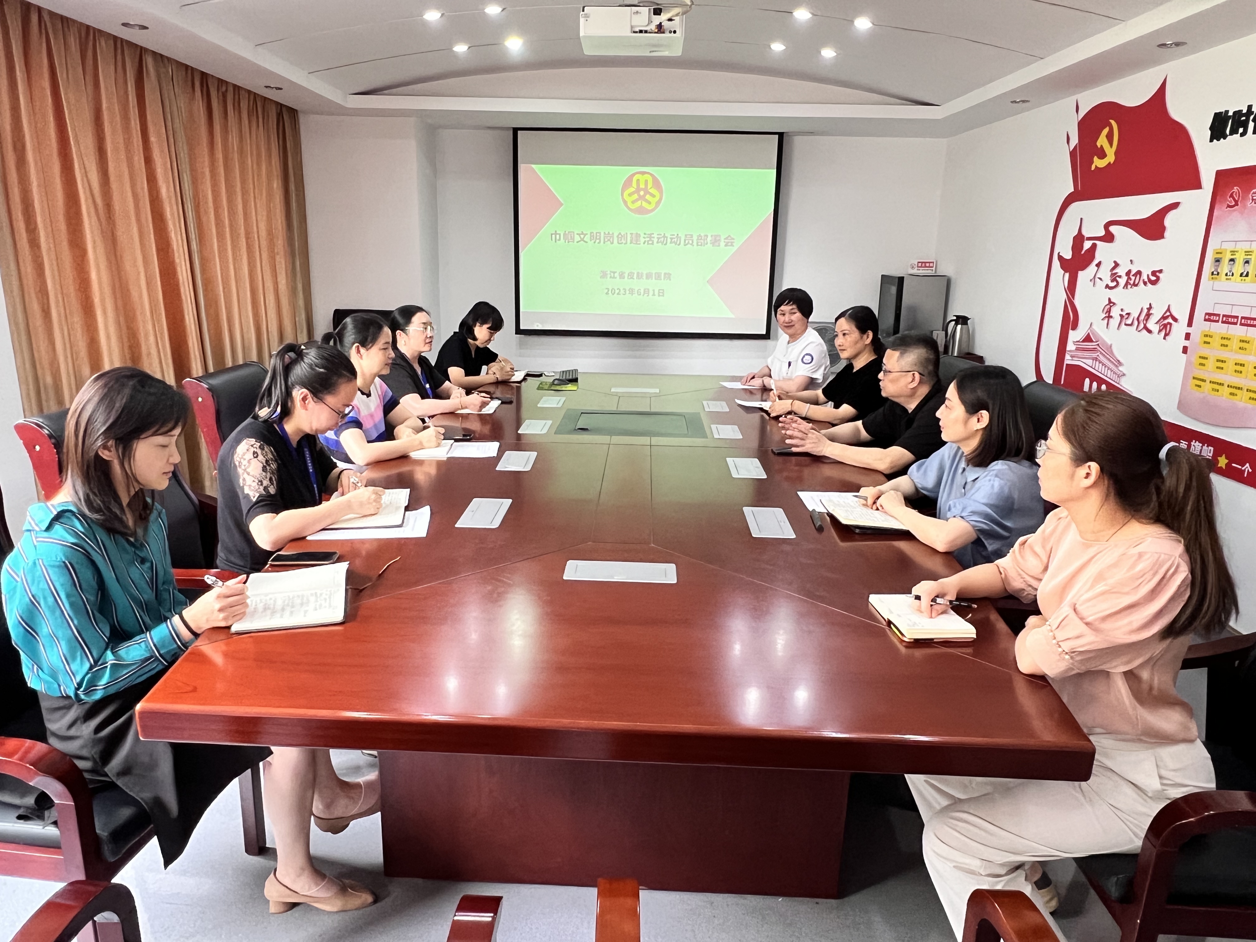 为扎实推进我院省级巾帼文明岗的创建工作,2023年6月1日下午,我院召开了巾帼文明岗创建活动动员部署会,院巾帼文明岗创建工作领导小组成员、创建岗岗长和主要负责人参加了会议。 动员大会上,妇委会主任贺悦介..