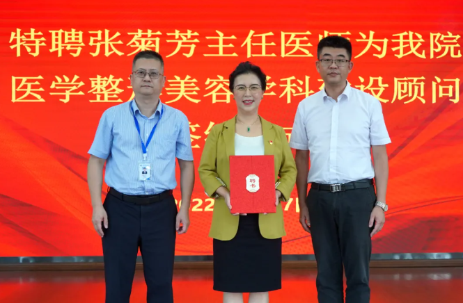 8月17日,浙江省皮肤病医院六楼多功能厅内掌声雷动,学科建设顾问签约仪式在此隆重举行。在院领导班子、中层干部和医务人员的共同见证下,党委书记陈江天为医学整形美容学科顾问张菊芳主任医师颁发聘书,常务副院长桑旭东与张菊芳顾问签约,签约仪式由副院长董晓明主持。