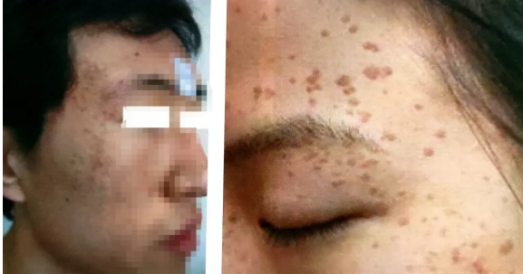 看到这样的皮疹,你是不是觉得傻傻分不清呢?这难道不是一样的吗?其实呀,这是两种病。左边的图片是扁平疣,右边的图片是脂溢性角化病。