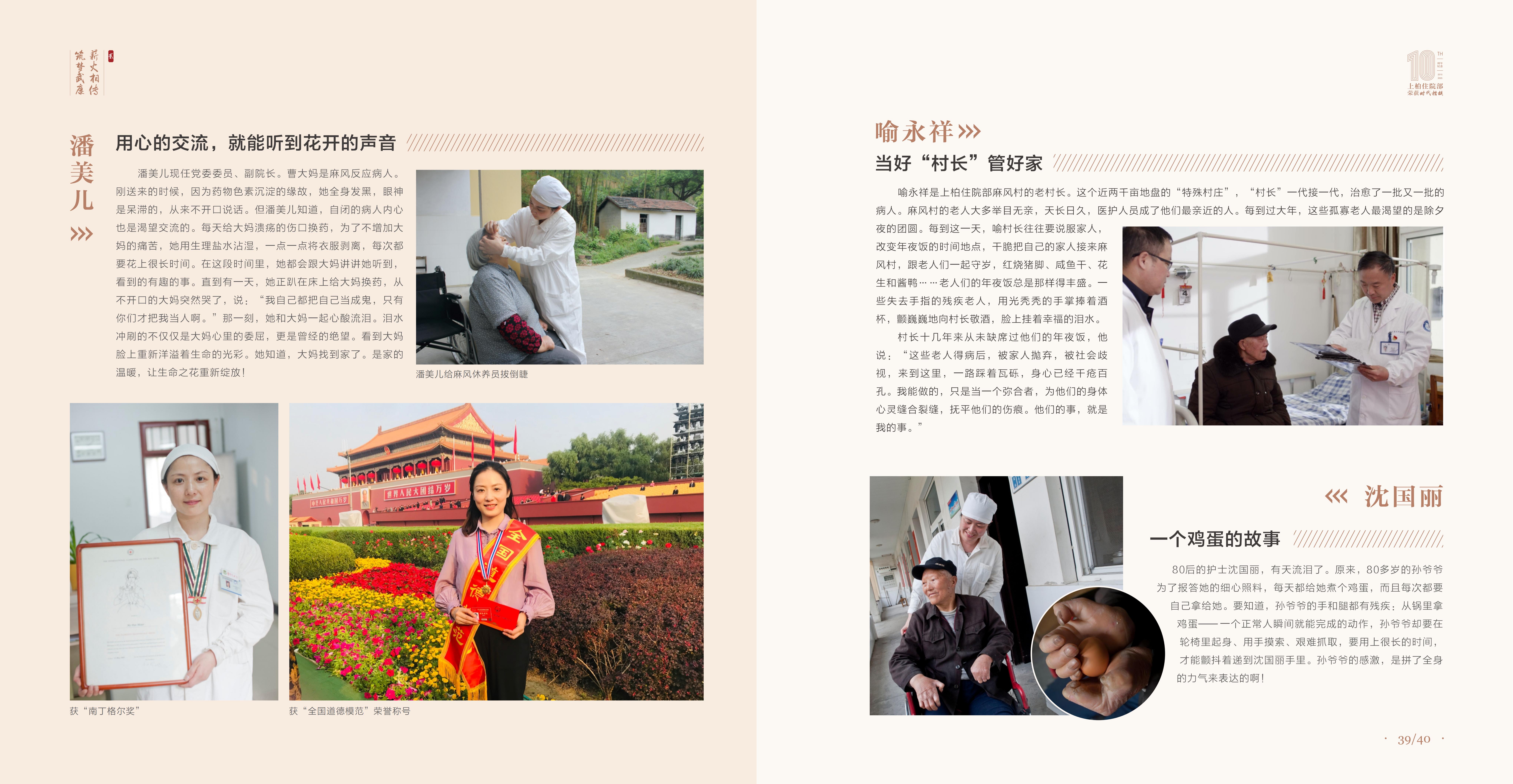 1952年,浙江省麻风病院正式建成启用以来,一代又一代的麻风病防治工作者在艰苦的环境下,扎根山区,默默奉献。他们十年如一日,倾尽所有,宛如一道光,照亮了那些病人痛苦的人生,在生理与心理上给予他们生存下去的希望和力量。真心真情,让他们不是亲人胜似亲人。几十年间,医患故事,点滴于心,蕴含着不一样的温情光芒。